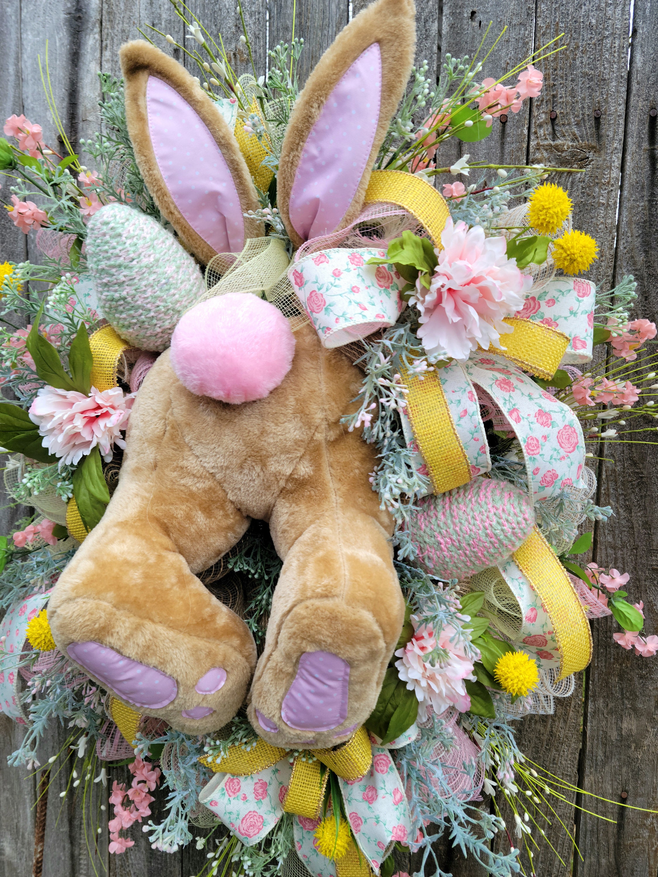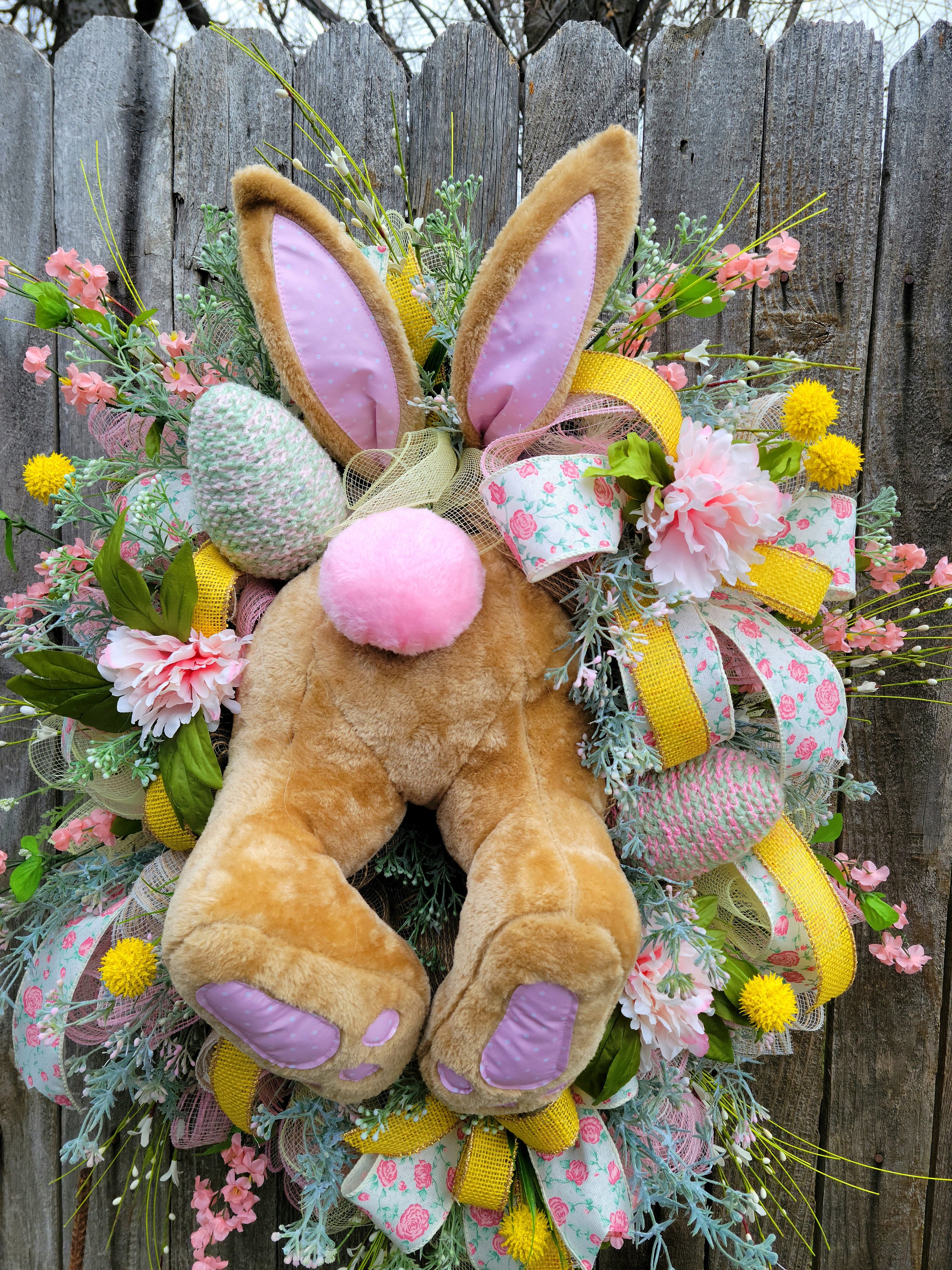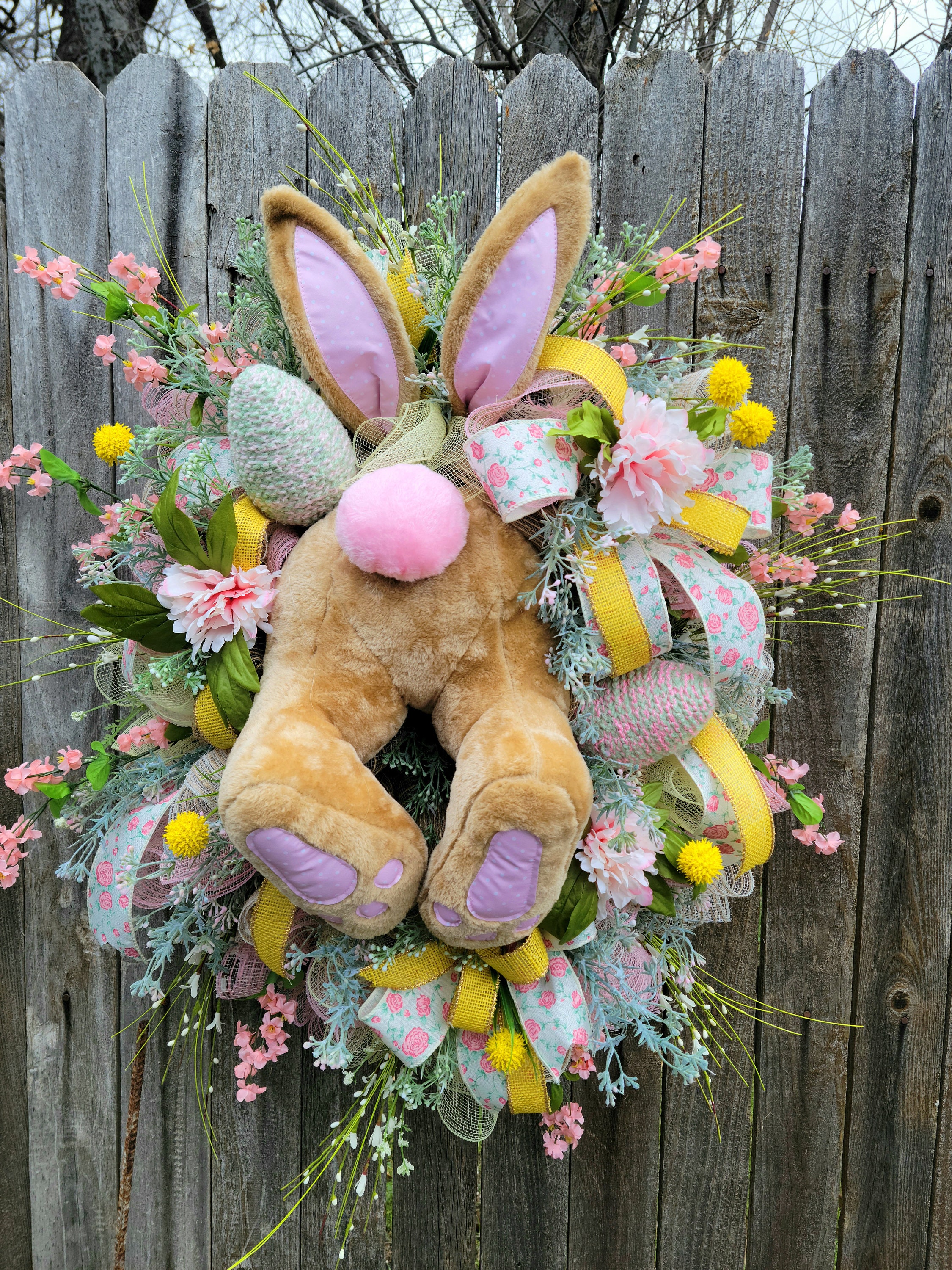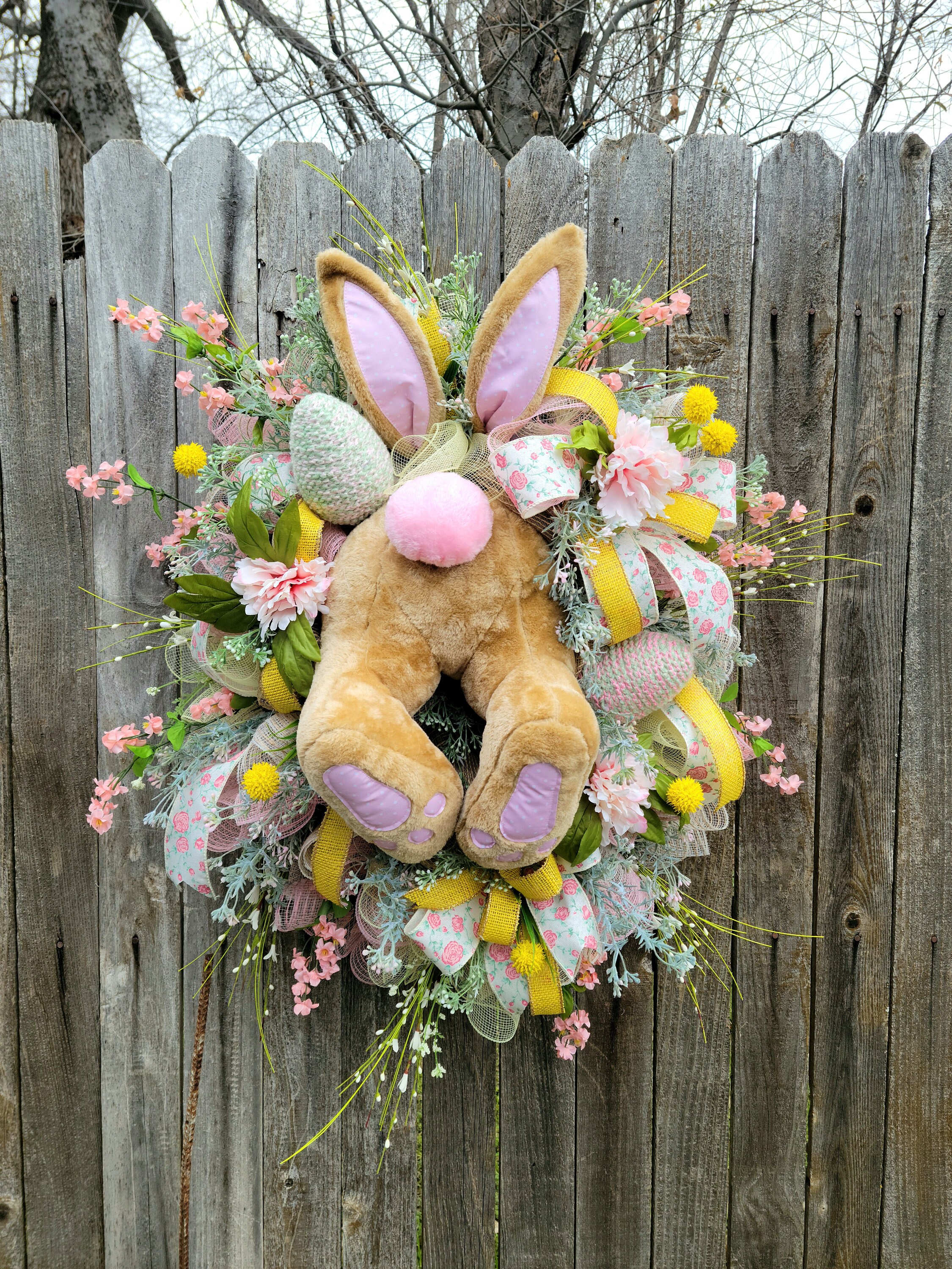 This joyful Bunny butt Wreath is the perfect addition to your Spring Decor.