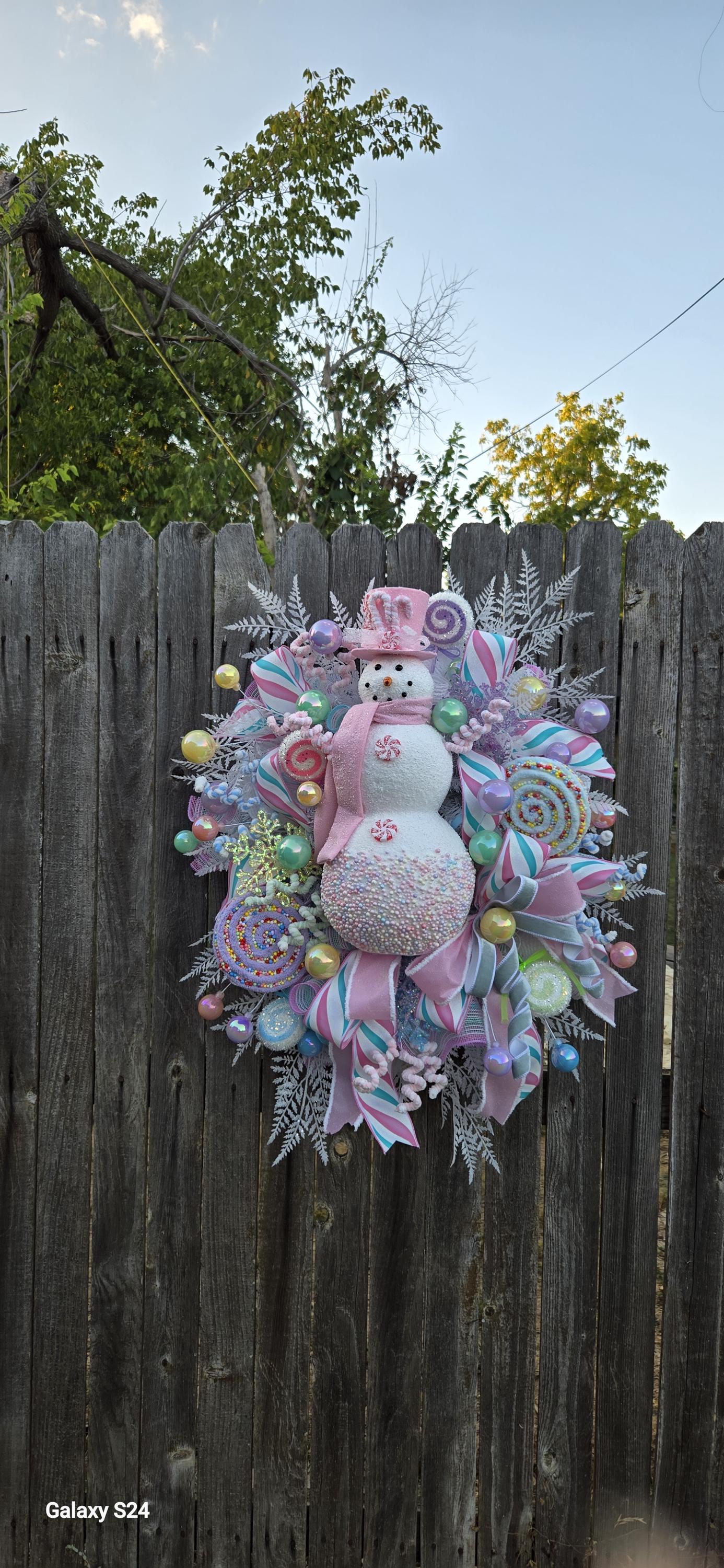 https://designsbybvboutique.etsy.com/listing/1778463299/snowman-wreath-candyland-wreath-pastelsee other listings :